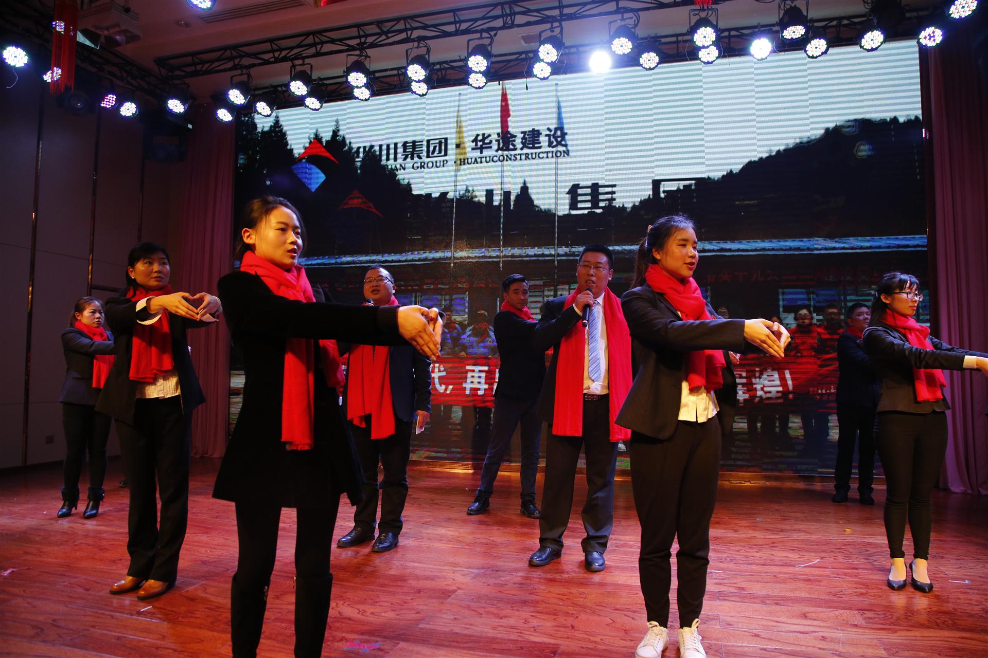 下午一時許,集團舉行了2018年新春團拜會。與會人員歡聚一堂,喜迎新春,共謀未來。團拜會在歌舞《好運來》中熱鬧開場。隨后舞蹈、合唱、歌伴舞悉數(shù)登場,節(jié)目新穎、編排創(chuàng)新,華北片區(qū)帶來的改編自《成都》的《工地》和改編版《為了誰》,唱出了華北片區(qū)修路鋪橋的艱辛,一句句歌詞展現(xiàn)著一幅幅畫面,一幅幅畫面都是華川兒女辛勤耕耘的成績。華途公司帶來的手語舞《相親相愛的一家人》、衡信公司帶來的歌伴舞《感恩的心》表達了華川兒女一家人,齊心上下共迎美好未來的憧憬。整場團拜會歡樂熱鬧,洋溢著喜慶歡快的節(jié)日氛圍。大家笑語不斷,不時舉杯共慶,共敘家人情誼、共話未來發(fā)展。