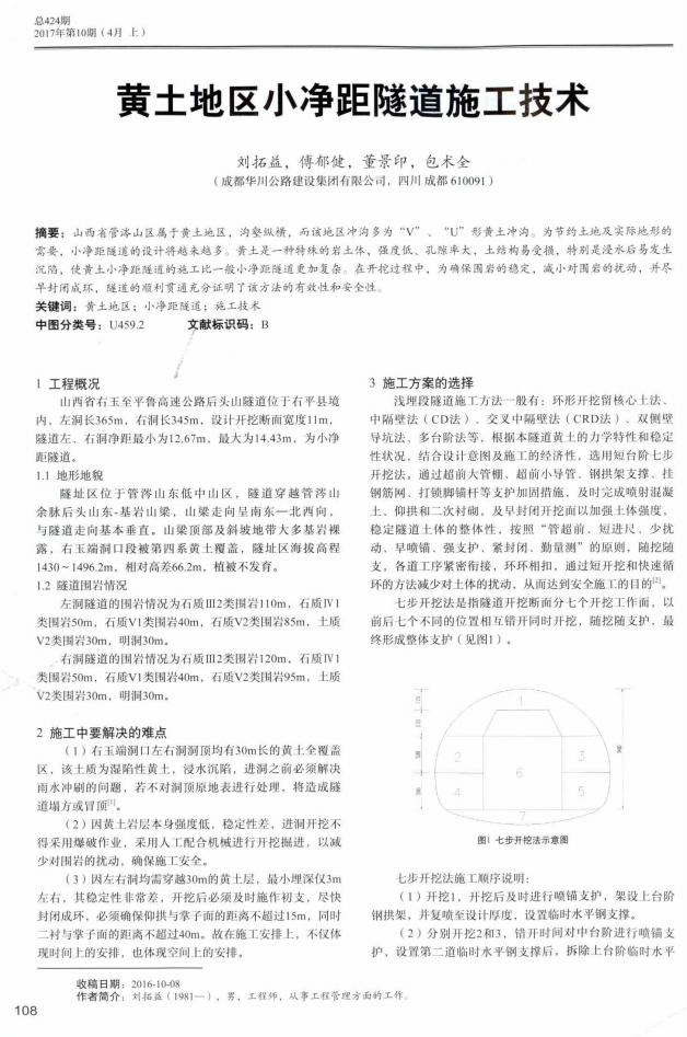 5月12日下午,山西右平項目部收到來自中央級期刊《交通世界》(旬刊)編輯部寄來的學(xué)術(shù)論文刊登賀信,祝賀由成都華川公路建設(shè)集團有限公司山西項目部項目總工程師劉拓益,項目副經(jīng)理董景印、包術(shù)全,項目副總工傅郁建合作的學(xué)術(shù)論文《黃土地區(qū)小凈距隧道施工技術(shù)》被采用發(fā)表,該項學(xué)術(shù)論文的發(fā)表為集團公司在科技成果方面再次添磚加瓦,同時表明了山西項目在科技成果的創(chuàng)新工作上再上了一個新的臺階。