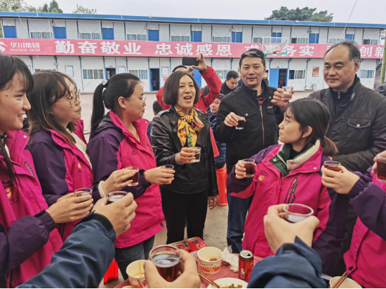 (集團黨委副書記施繼梅與大家共飲慶功酒)